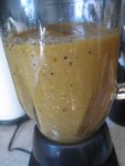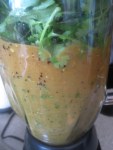 So when you have your veggies roasted and peeled you have a pile of mushy stuff. Shove it all in your blender or food processor and let it go until its whatever consistency you like.  Then start working in the washed cilantro until you have the taste and consistency and color you want.  I’m lazy and don’t cut it, I just kind of tear it or shove it in there in small batches until it all gets worked in.  I did this  over the weekend when I had time.