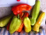 Peppers, I prefer pabloanos, but I have used all kinds of  peppers for this.  This batch was billed as a pablano/banana mix.  You can either cut the tops off and roast that way or roast whole and deal with the seeds later while you are peeling the stems and skins off.   Either way works, but the cut off in advance method may be a little less messy.  Roast in oven under broiler or on grill on bottom close to the fire until the skins are charred and black.   Then let them rest and peel off as much skin as is fit. There is a picture of the skin carcases somewhere here.
