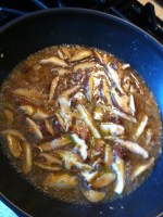 Locally grown  mushrooms, sauteed with onion and reduced with Red Wine Vinegar and  beef broth.