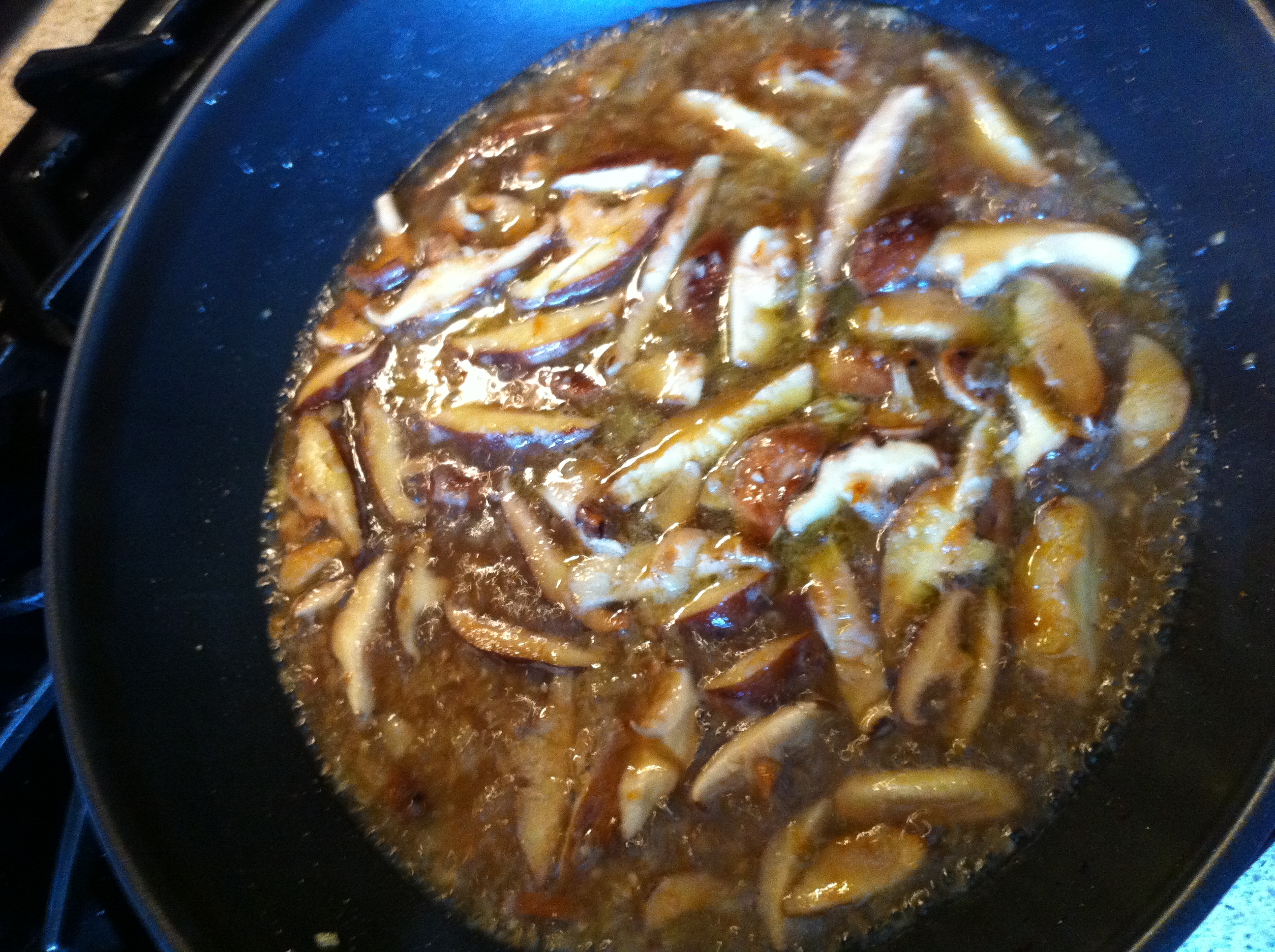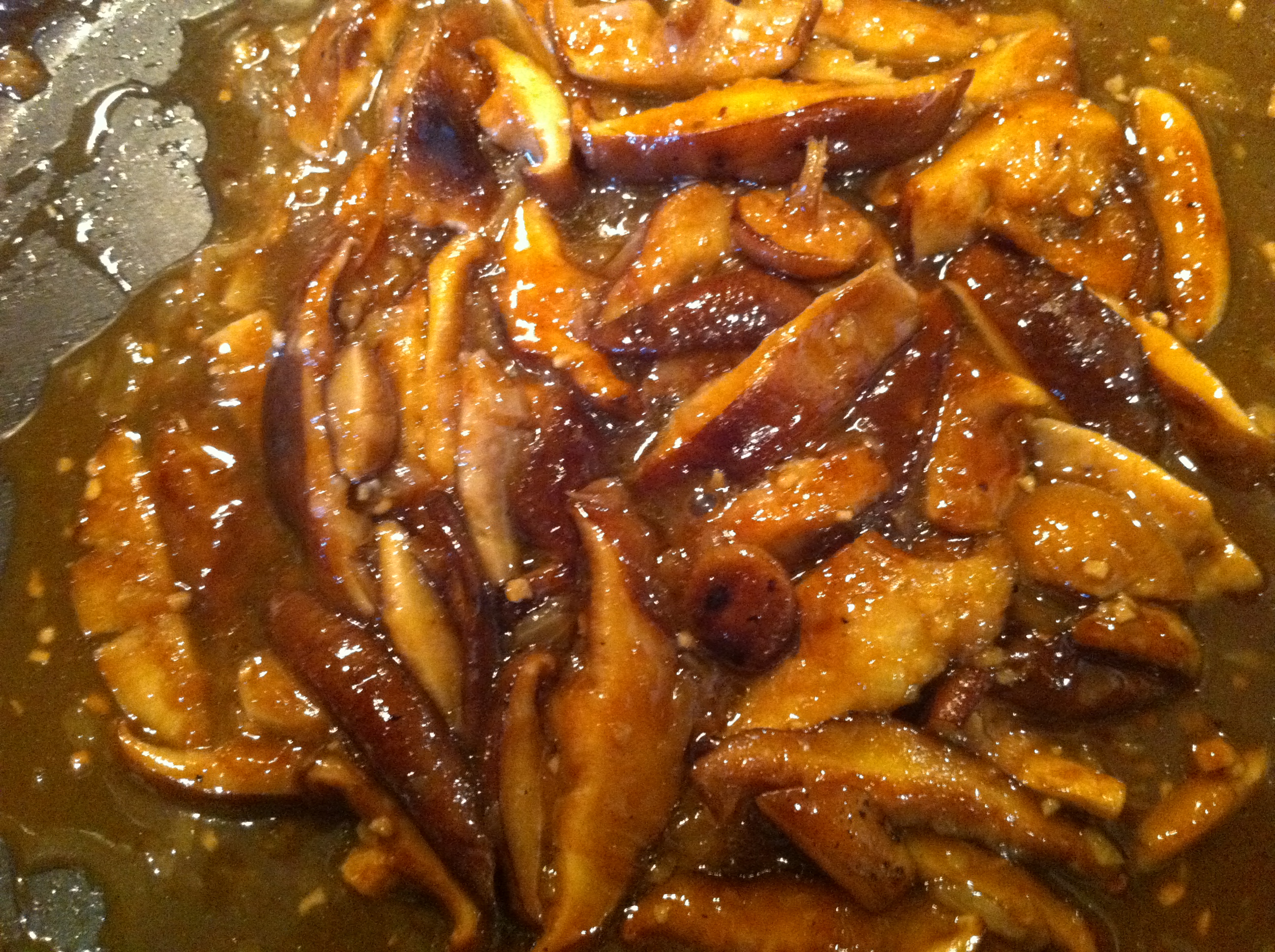 Locally grown  mushrooms, sauteed with onion and reduced with Red Wine Vinegar and  beef broth.