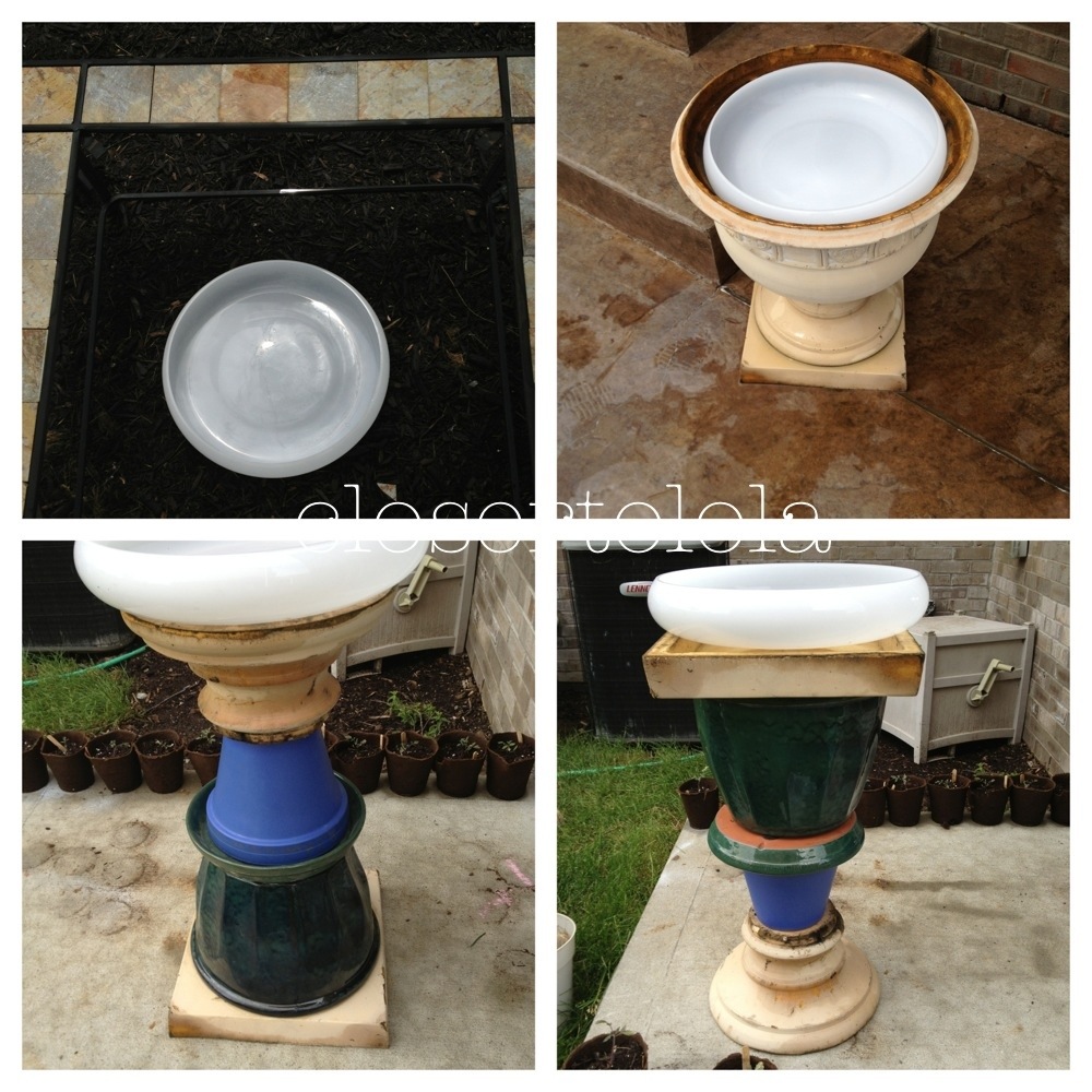 In this case I knew I needed a bird bath topper part. I was thinking big saucer at Lowe’s but I happened upon this big shallow white glass bowl at goodwill for $6.