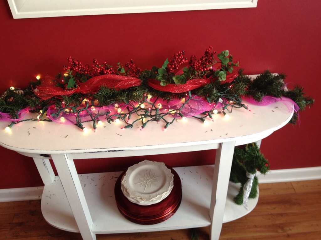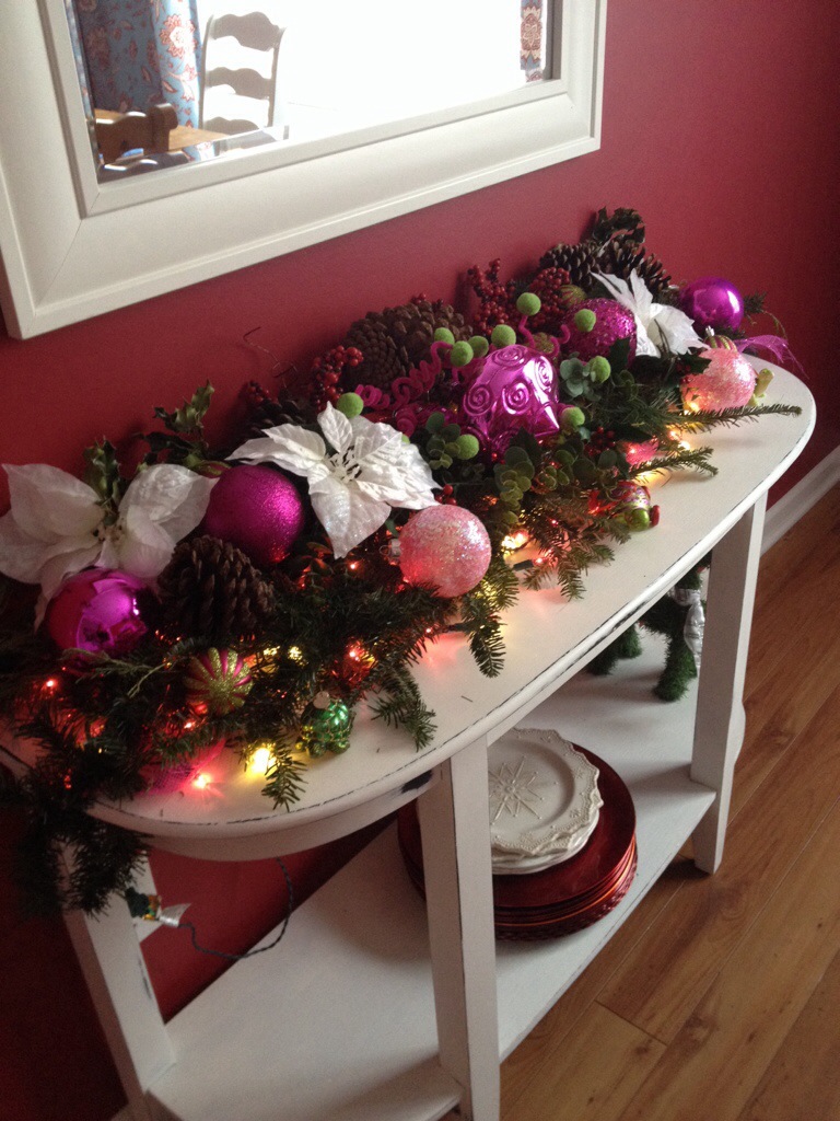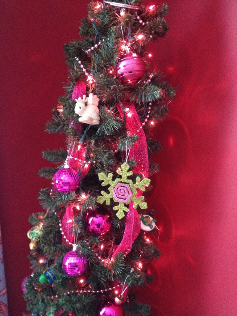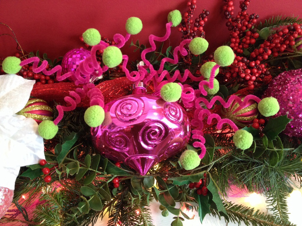 Posted: 2013/12/10 | Author: Lola | Filed under: Decorating | Tags: Delta Zeta Christmas tree, pink and green ornament table scape, pink and green turtle tree |Leave a commentThe rest of the house is fairly simple this year. Red , white and silvery color scheme. Not a lot of mesh or sparkly beaded garland. I wanted to have one thing that was. Little wild and crazy. I’m hosting the local alumnae group Christmas party this year so I decided to do a pink and green table scape and tree this year. I saved all my turtle ornaments for the dining room and kept the green to a minimum so the pink would blend with the room. I lie the Dr. Seuss esque fuzzy line green and pink chenille swirly balls so I put them all on the table scape and really layered on the white and pink underlights. I may add more tithe dining table come party time. But for now it’s my Delta Zeta tree and table.