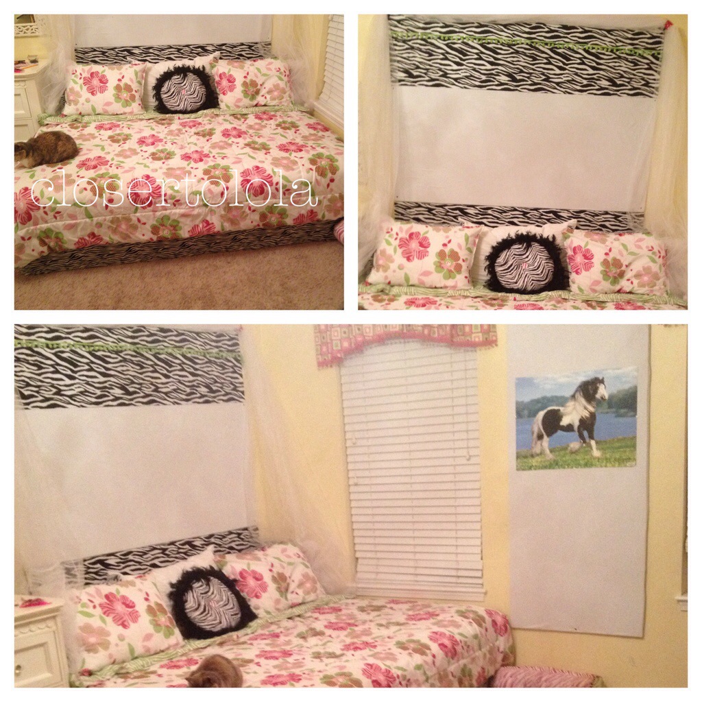 Posted: 2014/03/26 | Author: Lola | Filed under: Decorating | Tags: DIY memo board, pink and green bedroom, queen bed as a day bed couch, tween room, Zebra room | Leave a commentI’ve been on a work sabbatical that is nearing an end. Part of the time I have been seriously nesting. My daughter’s room has been “off” ever since we moved the French line green chalk painted desk to the playroom.