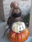 Here is a little background about the spiders. My Husband HATES SPIDERS! So being his loving family we of course think it is funny to torture him with them every Halloween. It started with Charlie and Beauregard and then this year we added umm, whatever we named the other 3. I’d add more to my collection but I don’t want two that are the same. I’ve got to take a trip to Micheal’s in search of a grey one. In the same fashion we have had the two plastic rats for years and years.