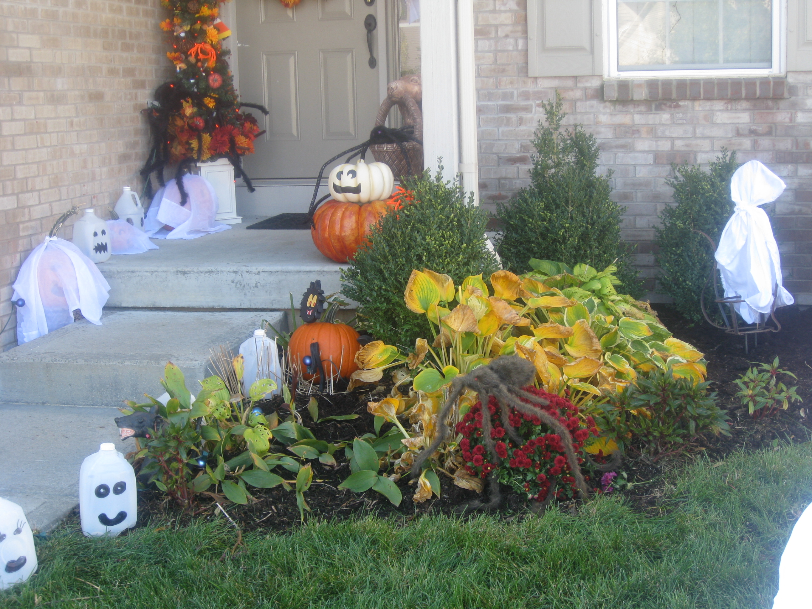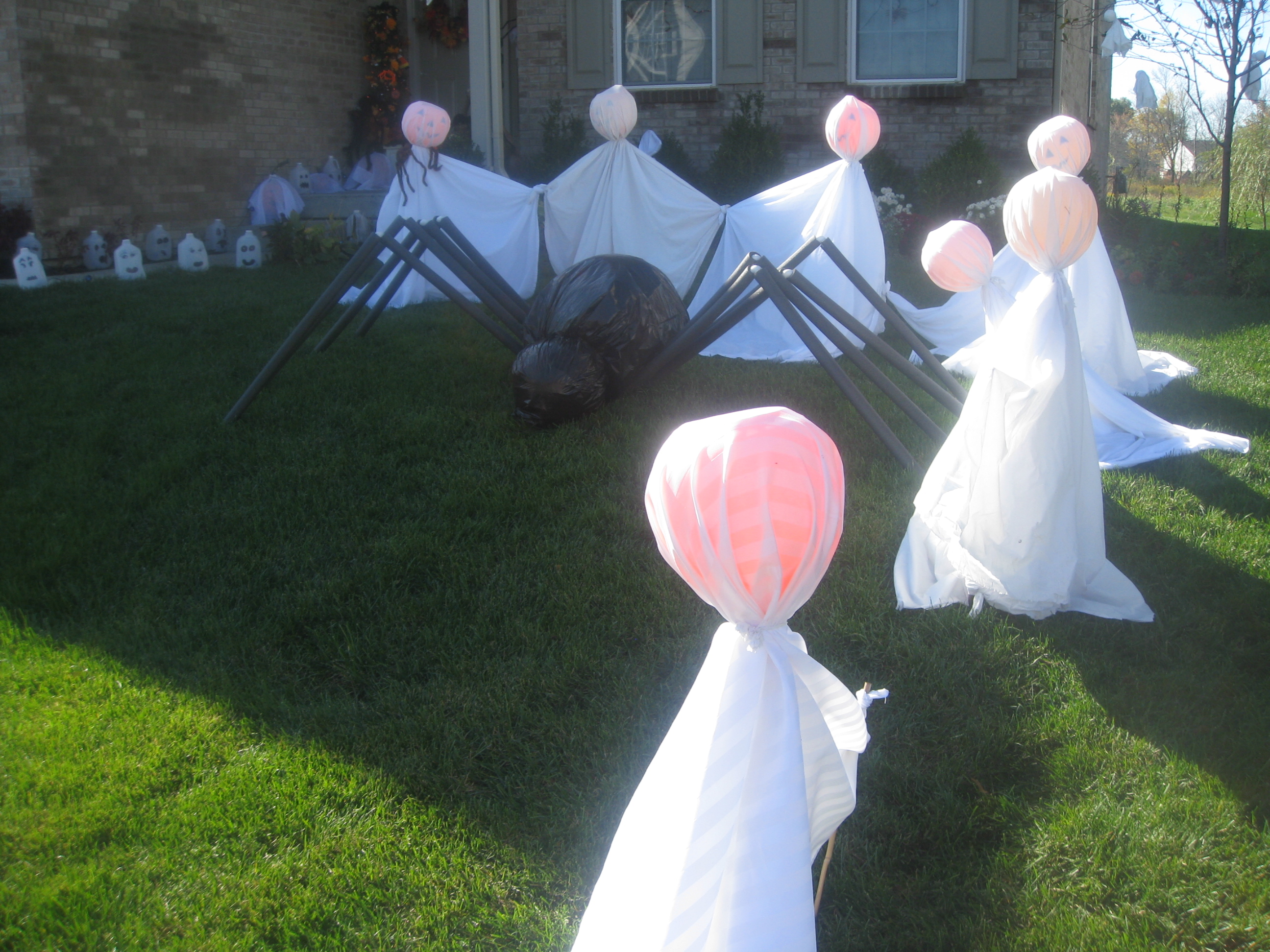 Posted: 2013/10/29 | Author: Lola | Filed under: Decorating | Tags: Ghosts, Halloween, Halloween 2013 Home Decor, Halloween PVC Spider, Halloween Yard Decor, Holiday, Home, Painted pumpkins, Spiders | Leave a commentI’m glad I remembered Halloween was Thursday! Here are the final set of pics for our lawn and house.