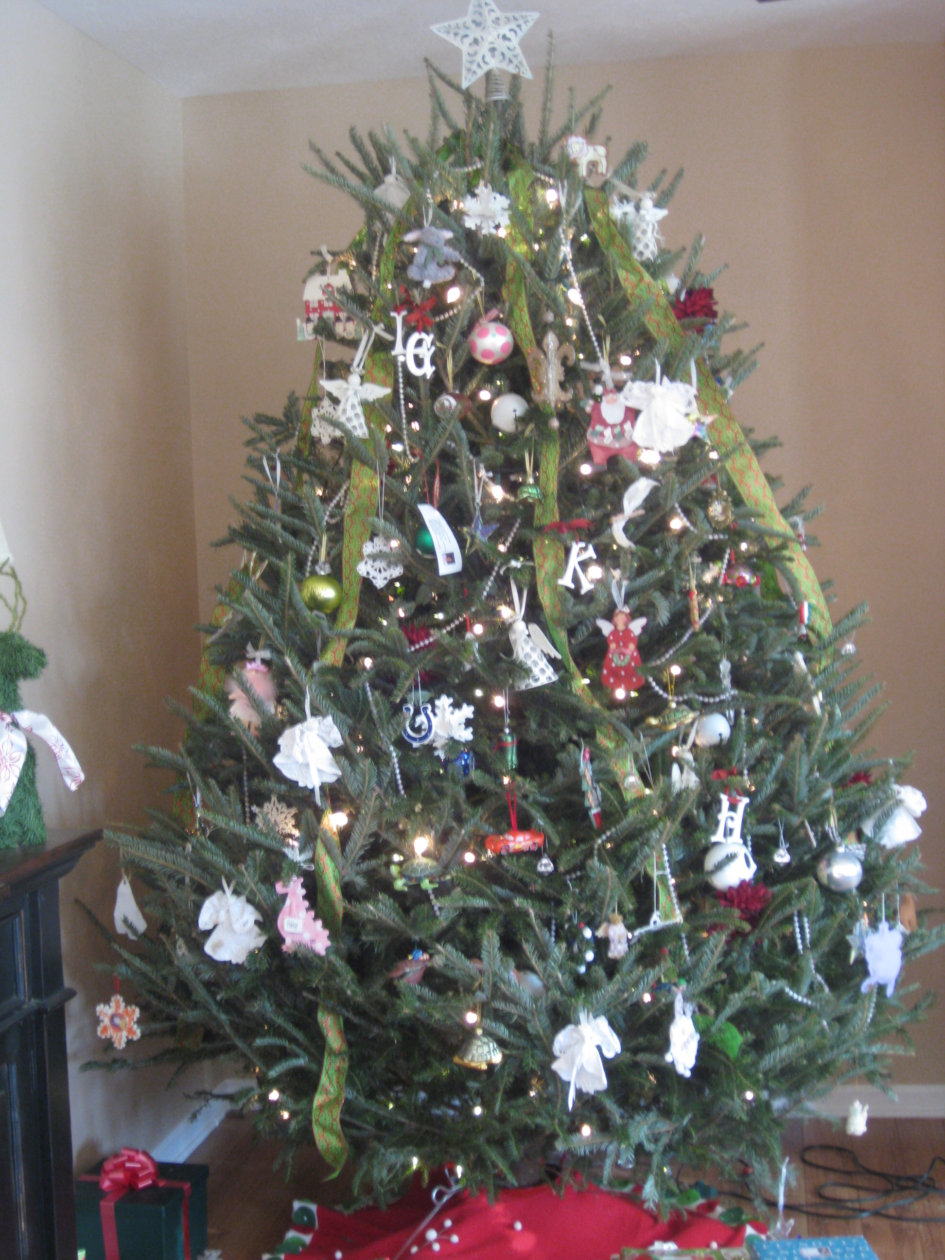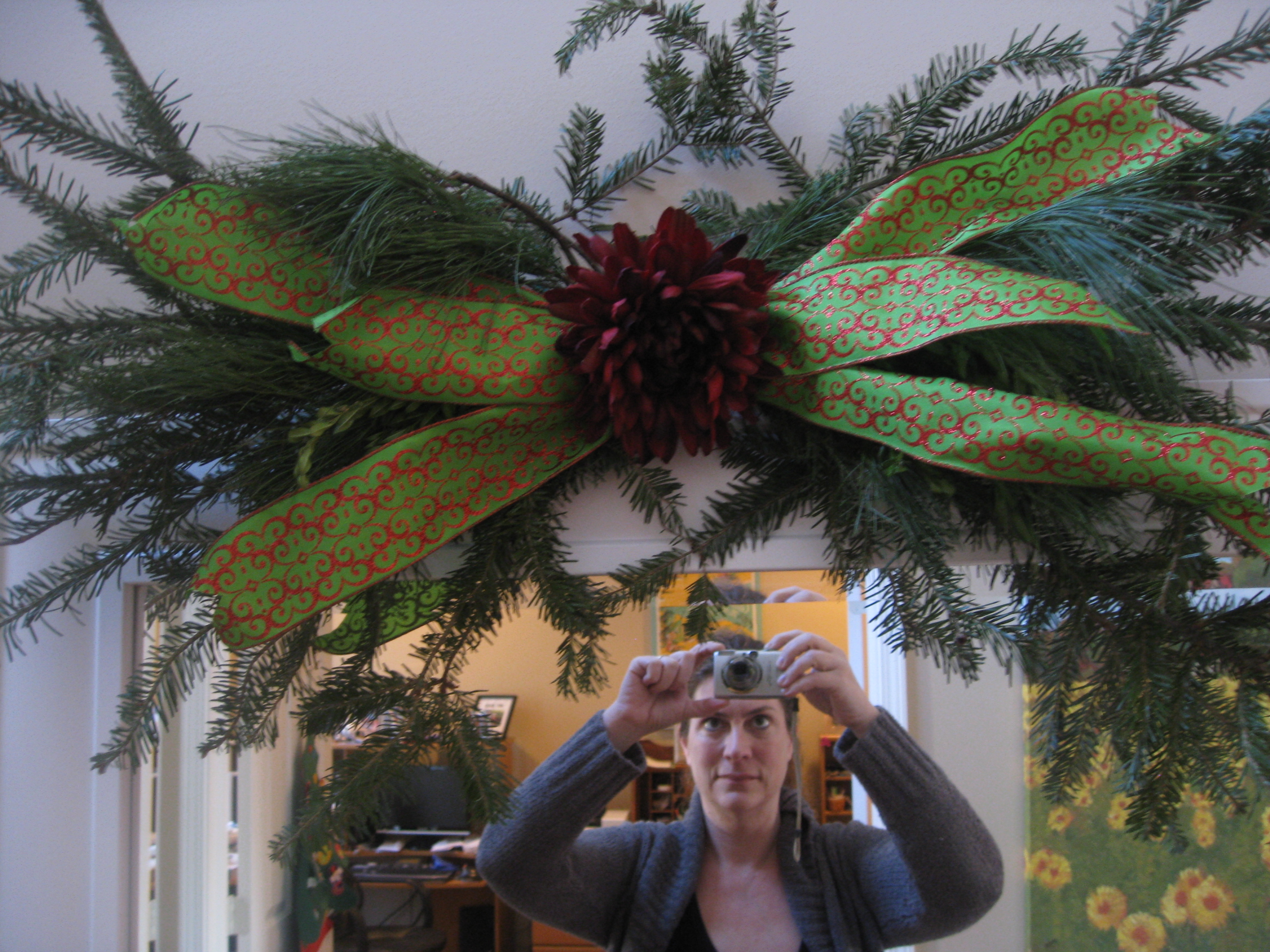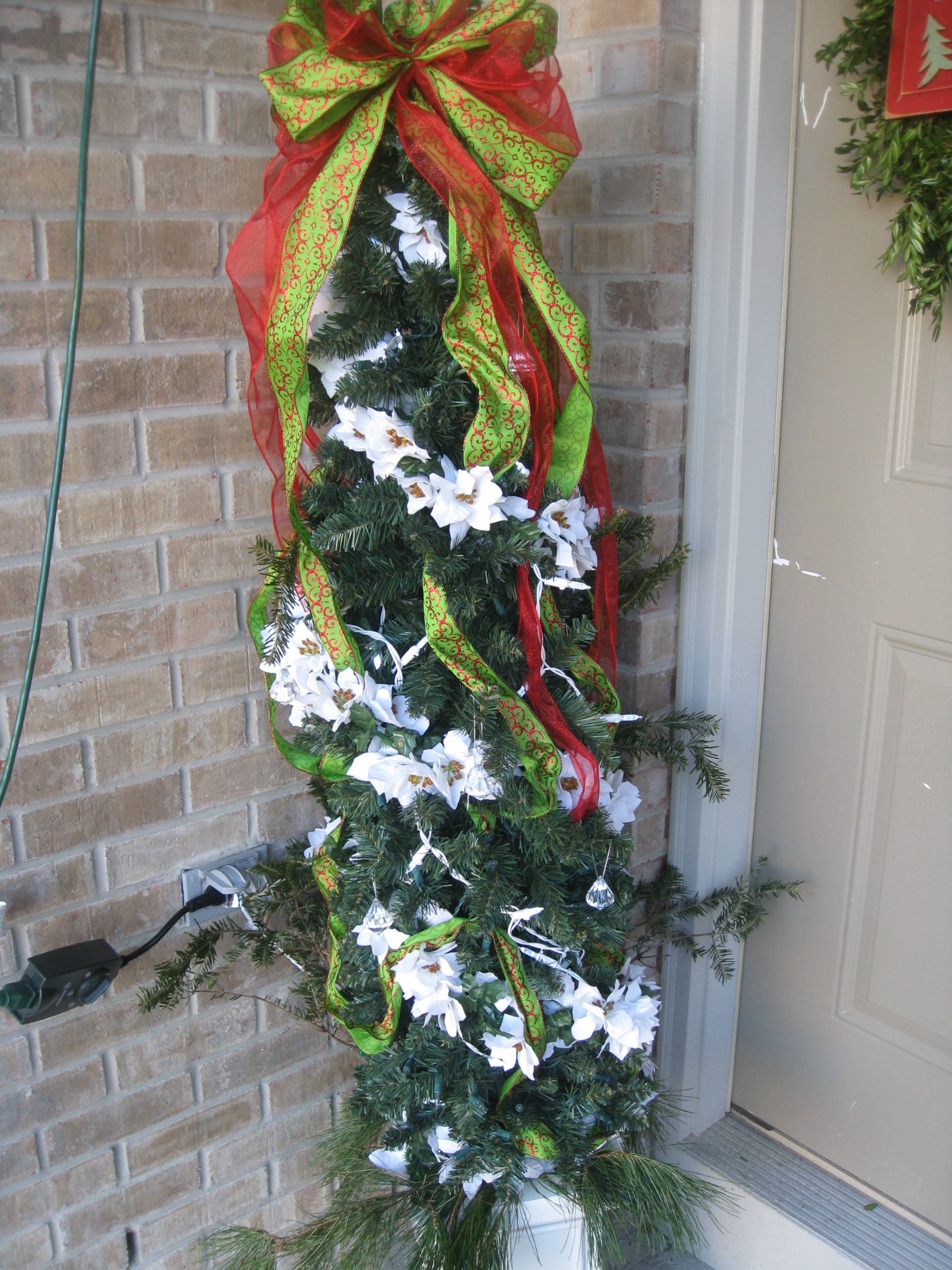 Posted: 2011/12/12 | Author: Lola | Filed under: Decorating | Tags: Christmas, Decorating, DIY Swags, holiday decor, Holiday Decorating, swags, Tree | Leave a commentHappy Monday Lovies. Somehow I found the time and most of the energy to run around and take some pics of the Holiday Decor I put up this year. I usually have 2 indoor trees, but after doing all of the swags I ran out of time and energy and decided to let the smaller artificial tree go for this year. We get a real tree every year and place it in a rather large open corner of our living room. We have 9 foot ceilings and it has to be wide enough to fill the space without looking puny. This one isn’t nearly as big as some of the trees of Christmas past, but at least it didn’t fall on top of me while I was trying to move it and require my daughter to go ring the neighbors doorbell so he could come rescue me like a few years ago. I found the ribbon at Sam’s Club and you may not be able to tell but all of the red on both kinds is actually glitter. When I was done putting the tables and mantels together it looked like Santa’s Glitter Den up in here, and all over my face. Totally worth it because it looks far better than it photographs. I had Mini Boobs make all the bows as she is my go-to bow maker and she works really cheap! The swags are a mix of 4-5 different kinds of greenery I bought fresh in bunches at the local nursery where we get our tree every year and the backdrop for them is the bottom cuts from the actual tree itself. I used a set of pruning shears and a lopper for the larger branches. It takes awhile to match them all up kind of evenly and then work in the other top layers, but it looks really nice for not a lot of money. I also got the loading guys to allow me to take a whole pile of tree pieces from the other trees that had been cut before the greenery girls came over and turned them into swags they sell there for at least $10 each. And those aren’t for anything layered like mine. The wreath on the door is boxwood and matches our front bushes. I used plastic garland ties to hold the swags together and when I ran out of those I used green garden tie tape that easily rips and has a little stretch to it. Just start with your biggest branches of greenery and then work in your others in layers to position as you like before tightening. Take the screens out of your windows and hang with big suction cups. They should stay up all season long. I chose white ribbon for the outside of the house because white shows up really well in shade and dark. We have led lights along the house to in bright white but I didn’t get a pic of those. For the tables and mantels I mixed in my silk garlands and other floral things to add some sparkle and depth. I’m no decorating genius but it is good enough for me! Enjoy!