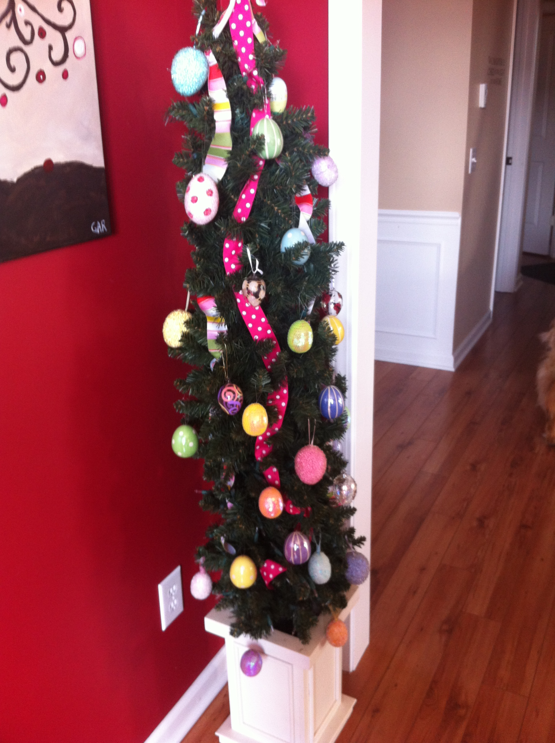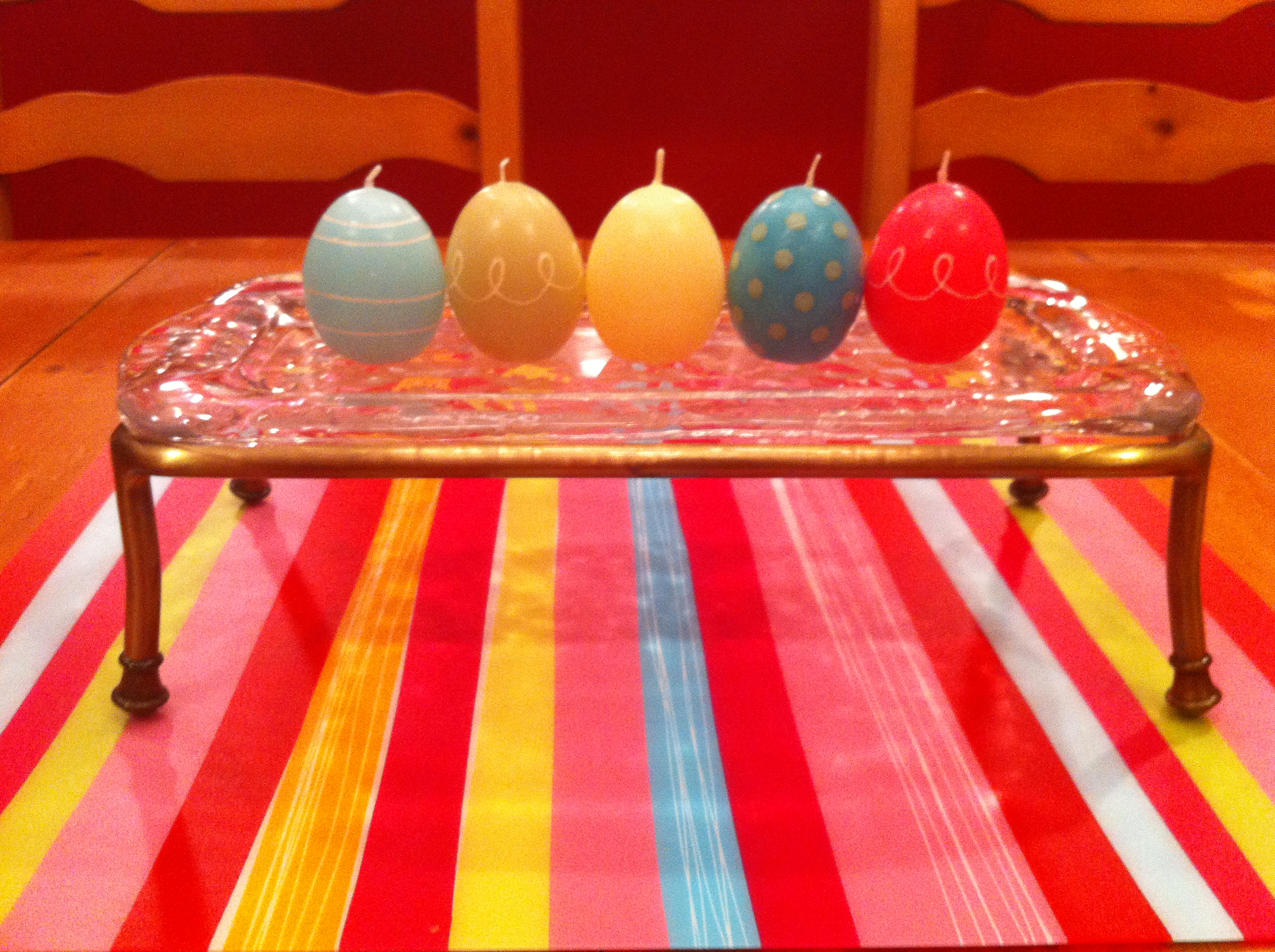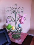 Posted: 2012/03/07 | Author: Lola | Filed under: Decorating | Tags: Decorating, Easter Decor, Easter egg tree, egg ornament, holiday decor, Holiday Decorating, Metal egg tree | Leave a commentI took a day off for me with the hopes of getting outside in the dirt and sunshine later. I can see this is the start of my series of months where I take a day or two off and just try to relax and do what I want. Which is usually write, garden or if I haven’t been training regularly, run. Later I’ll be running 6 miles but for now I’m finally getting around to putting up these Easter Decoration pics. I have collected egg ornaments for a while, but recently had to curb my collection because I was running out of room on my metal egg tree. This year I had an idea that I could make an Easter tree like I made a Fall tree. I was slightly concerned I might not like having a tree out so close to Christmas, but as it turns out I think it looks kinda neat. I was even able to take the metal egg tree back down to 2-tiers from 4 this year. Which also mean I now have more room for new egg ornaments. It’s a win! The rest of my sparse Easter Decor is mostly just stuff i picked up here and there. I did change the ribbons on the mantle for the season though and I really like them. I think this opens up the possibility to change the ribbon for the season and leave my DIY topiary trees up all year round. I have another one of the candlesticks too so I am now officially even more bummed I didn’t find 3 of those little clearance tree cones. Oh well, it can’t always be an “all rainbows shooting out of a Unicorn’s butt” day can it? Here are the pics, enjoy.