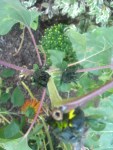 Harvest one of tomatoes is over, several batches of sauce were mad e, including one with so much garlic it is actually SPICY hot. The 2nd harvest is brewing. There were about 6 horn worms this year, four the wasps killed with their eggs so that was VERY nice. One I let the kids keep as a”pet” (mwahahahah), and this little guy I’m going to let stay since it is late in the year anyway.