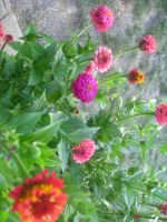09/02- The first Zinnia is still make seeds, but there are two more Zinnia friends entwined with the big guy. He is HUGE now and has bloomed on his main head.
