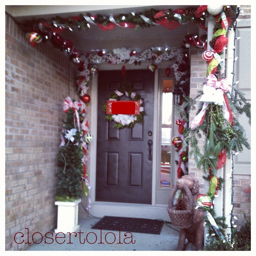 Posted: 2012/12/02 | Author: Lola | Filed under: Decorating | Tags: Christmas garland, Christmas Porch, Deco mesh garland, mesh garland, ornament garland, PInterest | Leave a commentI really didn’t like the way the deco mesh porch decorations looked so I redid them. I’ve been decorating up a storm this year and thinking of all kinds of life posts I need to write. Let’s hope I get done with all my projects soon. Many more pictures to come. For now here is the front porch redo. Less Christmas vomited more simple and classy yet still colorful and hopefully fun. What new decorating projects are you taking on this year? I’m up to my eyeballs in mesh, greenery, glitter ribbon, snowflakes and ornaments.