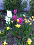 I finally got it together enough to get some shots of the  garden this Spring. It has been the best spring ever, I forgot how much I love spring because it seems we never actually get one.   This year has been at lest 2 springs at once.  The Peppers and Tomatoes I ordered from Gurney’s are on their way and I’ll get them in this weekend.  We are going to buy Tomatillos from the  Chilewoman.com and make the trip to Bloomington, IN to pick them up over Memorial Day weekend.   For those of you local I have  divided Siberian Iris  and some leftover onion starts that may or may not be viable so you can just have them.  Today I hope to get Sunflower and Zinnia seeds in while I am supposed to be nursing my foot, shhh, don’t tell Babu.
