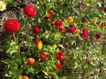 The runners-up this year were the cucumbers I grew on a trellis and the smuggled South African Pappadews. The real stars of the garden this year were definitely the Zinnias. I captured them in their fall glory last week both in sunlight and at the evening magic hour. I love how they get all multi colored and spiky this time of year. The Envy’s started slowly but by the end were a nice row of lime green. The Zahara Starlights my Mom sent me for my birthday were stunning and the White Weddings have become this amazing creamy yellow color. Even the mix on the side if the house in the less than vibrant colors looks nice for Fall. I’m too exhausted and strapped for time to label these tonight. I threw in a few Gerbera Daisies and one of the last roses as a bonus.